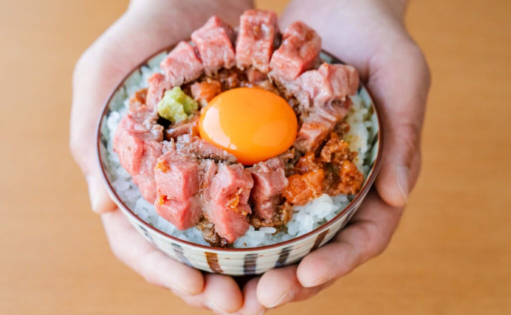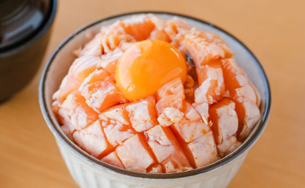 厚切りでやわらかい淡路和牛とサクラマス・淡路牛をからめた自家製ユッケ・濃厚な島たまごをご飯と共にからめて、心ゆくまでお楽しみください。